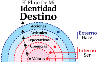 ...Y como ves, todo nace de tus valores ascendiendo hasta quien eres. Porque tus valores instalados determinan tus creencias. Y tus creencias invisibles afectan lo que esperas de la vida, y sin ser consciente de esto - tus expectativas alteran tus actitudes.