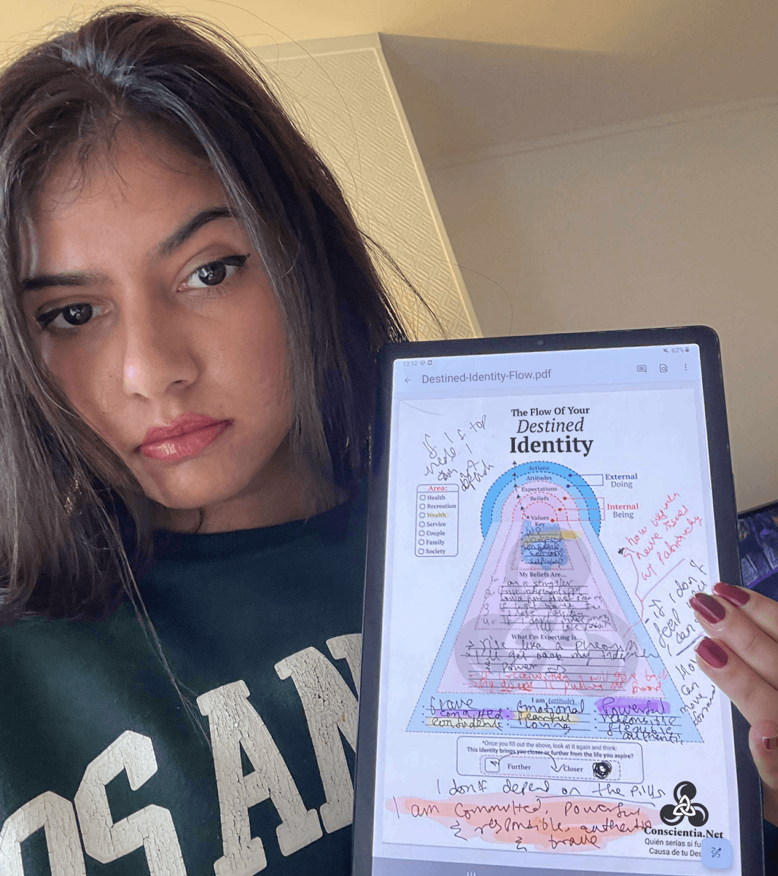 "Mi identidad era "soy una sufridora"... Estaba en una linea de tiempo donde mi vida iba a ser un sufrimiento. Porque así me veia sin darme cuenta - Ahora siento en mis huesos que estoy en otra linea de tiempo donde soy poderosa como un Phoenix" - Giah, Francia