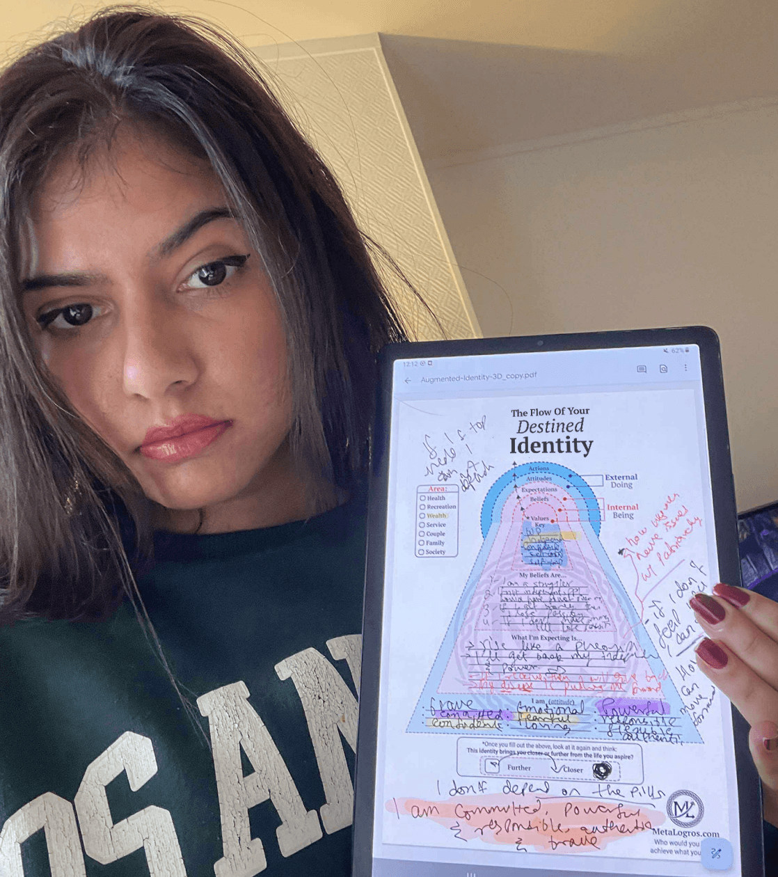 "Mi identidad era "soy una sufridora"... Estaba en una linea de tiempo donde mi vida iba a ser un sufrimiento. Porque así me veia sin darme cuenta - Ahora siento en mis huesos que estoy en otra linea de tiempo donde soy poderosa como un Phoenix"