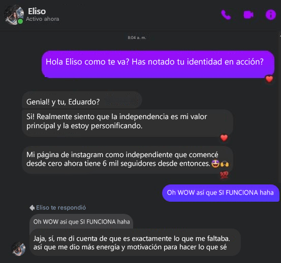 "Antes sentía que debía seguir la corriente de mi socio, dudando de mi propia voz. Al usar este programa, me di cuenta de que mi valor clave era la 'Independencia' y no lo estaba honrando. En cuanto alineé mi identidad, la energía regresó. Lancé mi página en solitario desde cero y ya somos más de 6,000 seguidores. Ahora sé que lo que me faltaba no era estrategia, era ser yo misma" — Eliso, Georgia